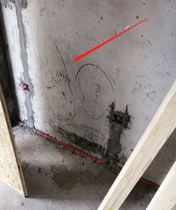 电工表示因上方墙壁突出,强电不好走竖槽,而公司不让强电走地面的缘故。